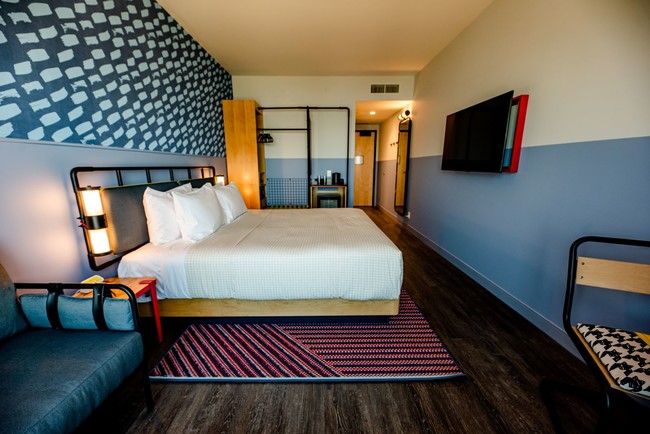 機能的にデザインされた同ホテルの客室には、都会のストリートアート文化を反映した大胆で斬新なインテリアが施され、落ち着いた色合いのブルーと大胆なイエローがメンフィスの生き生きとした精神を表現しています。お客様は、再利用された素材、気取らない快適さ、そして睡眠エリアとは別に用意されたワークテーブル、タスクライト、電源コンセントを備えた客室内のワーク・プレーラウンジなど、考え抜かれた設計のリビングスペースを体験することができます。工業用の納屋をイメージしたスライドドアを開けると、メンフィスをテーマにした特注の壁紙、ウォークインのレインシャワー、大きな洗面台、十分な広さのカウンタースペースを設けた、広々とした明るいバスルームにつながります。またリバーフロントのスイート8室には、ダブルシンクの洗面台と、引き出し型のソファを備えた広いリビングエリアがあります。リビングエリアにはステップアウト・バルコニーがあり、ミシシッピ川と象徴的なMブリッジの息を飲む景色が広がります。