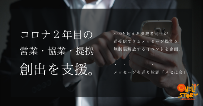 決裁者同士のマッチングを支援する決裁者マッチングSaaS「チラCEO(URL:https://only-story.jp/chira-ceo/ )」を運営する株式会社オンリーストーリー(代表取締役:平野哲也、本社:東京都渋谷区)は、コロナ2年目の営業・提携・協業機会創出を支援するため、決裁者マッチングプラットフォーム内約3,000人の企業決裁者にメッセージが送り放題になるオンラインイベント「メセほ会(メッセージし放題会)」の定期開催を開始しました。オフライン交流自粛から求める声が広がっている“新しい繋がり”の創出機会を提供します。