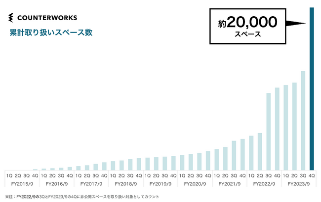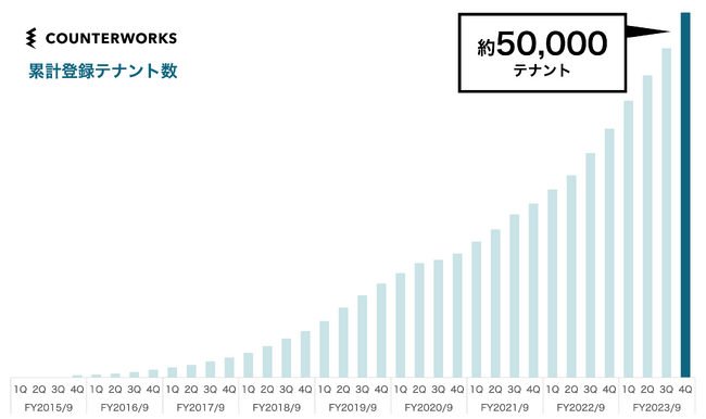 カウンターワークスは、「すべての商業不動産をデジタル化し、商いの新たなインフラを作る。」をミッションにし、商業施設のオンラインリーシング支援SaaS「SHOPCOUNTER Enterprise」や、ポップアップストアの出店支援プラットフォーム「SHOPCOUNTER」を提供しています。現在、「SHOPCOUNTER Enterprise」はマルイ、イオンタウン、ルミネといった大規模な商業施設に導入いただき、オンラインを活用したテナントからの出店問い合わせの増加と、それらの管理に関わる業務コストの大幅削減に寄与しております。また、「SHOPCOUNTER」はサービス開始から8年で、取り扱いスペース約20,000、登録テナント数は約50,000となり、日本最大級のポップアップストア出店支援プラットフォームへと成長しています。