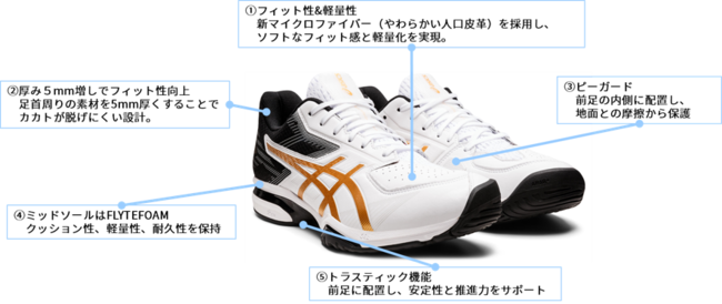 今回の商品は、アッパー(甲被)にやわらかい新マイクロファイバーを採用し、長時間快適にプレーができるようフィット性を高めています。また、アッパー内側に耐摩耗性に優れた素材を配置することで、耐久性を高めています。
