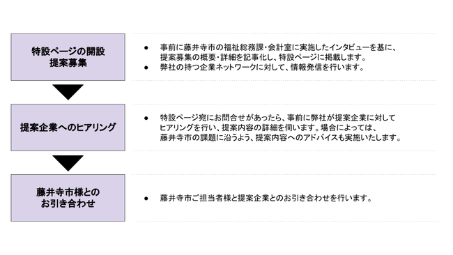 福祉分野・会計事務分野に関する藤井寺市の課題を紹介した特設ページを開設し、民間企業からの提案を募集