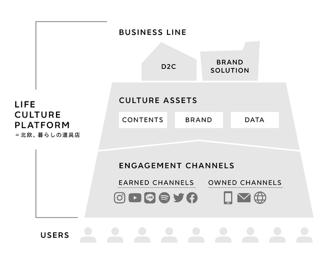 「北欧、暮らしの道具店」は、お客様と個別の商品やコンテンツではなく、世界観(ライフカルチャー)でつながるプラットフォームであり、ブランド力・信頼性・さまざまなデータを蓄積しています