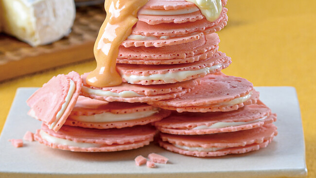 紅しょうが味のおせんべいでチーズクリームをサンドしたパリパリおせんべいです。