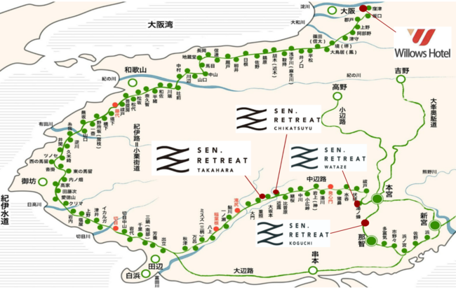 「SEN.RETREAT」は、大自然の中でストレスをリセットする「リトリート体験」ができる無人運営宿のブランドです。ブランドコンセプトは「RETREAT 歩いて、遊んで、夢中で休んで」。リラクゼーションに満たされ、明日の自分を好きになってもらえる体験をご提供します。熊野古道の主要な参詣道・中辺路沿いに泊まり歩ける宿を計4カ所作る計画で、第1弾として、標高300mの山間にある集落・和歌山県田辺市中辺路町高原で、空き家をリノベーションした一棟貸し宿「SEN.RETREAT TAKAHARA」を2021年10月、開業しました。