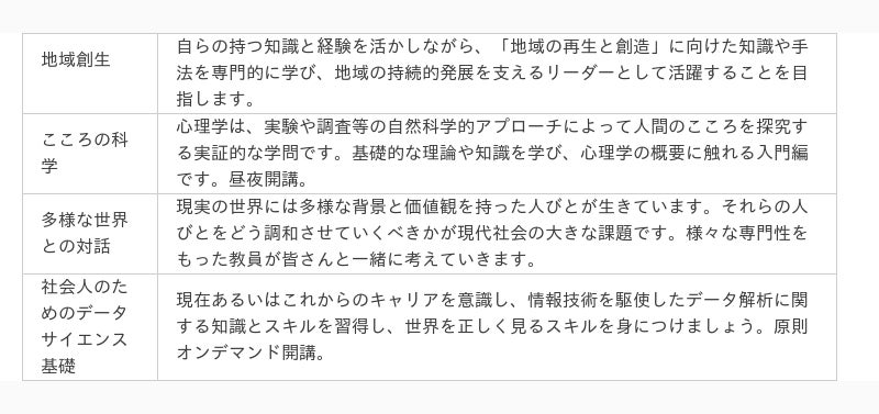 です。社会人経験を積み重ねてきた今だからこそできる、ご自身のこれからの“未来”を、新しい自分をデザインするための学びの場を本学の「知」を活かして提供します。