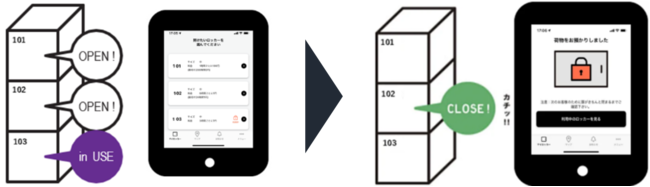 ※ロッカーの開錠に決済が必要な場合、決済の後にロッカー開錠が可能となります。扉を閉めると、ロッカーの鍵は自動で施錠されます。