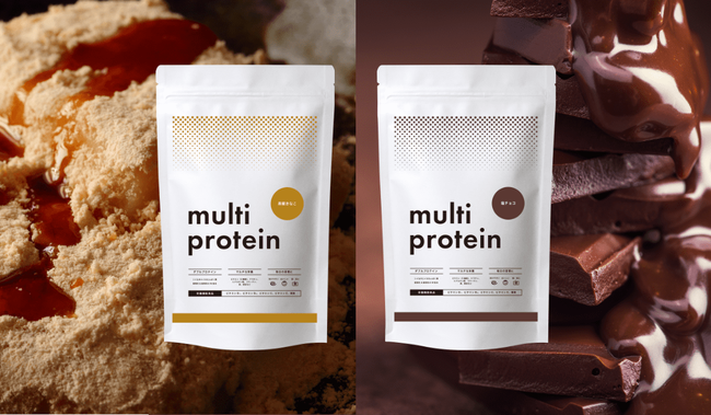)は、たんぱく質と同時に、ケラチン・ヒアルロン酸などの女性に嬉しい成分も摂れるシェイカー不要の美容プロテイン『multi protein(マルチプロテイン)』から新フレーバー、きなこと黒蜜のバランスや牛乳で割るのに最適な味にこだわった「黒蜜きなこ」と塩を少し加えチョコレートの素材がもつコク深い味に仕上げた「塩チョコ」の2種を、2022年1月31日(月)公式サイト( https://multi-protein.jp/ )にて新発売しました。