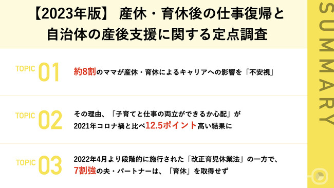 調査概要:【2023年版】産休・育休後の仕事復帰と自治体の産後支援に関する定点調査