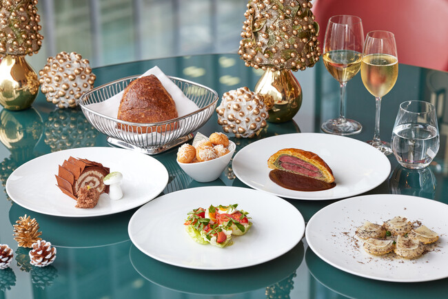 ランチ時は東京の賑やかな街並みを、ディナーの頃は都会の夜景を眺めながら、思い出に残るお食事をお楽しみいただけます。総料理長ダニエル・カルバートがフレンチをベースに考案したメニューは、ロブスターサラダ、トリュフのラビオリ、ピジョンピティヴィエ、そしてデザートにはブッシュドノエルを。シャンパングラスを傾けて、クリスマス気分を盛り上げてください!
