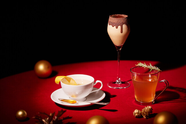 この季節の乾杯のために、バーチームがクラシックなカクテルにこの季節ならではのひとひねりを加えて3種類のクリスマスカクテルを創作しました。