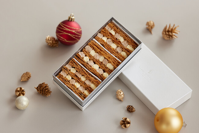 サクサクのパイ生地に、栗入りのマロンカスタードクリームとなめらかなバニラクリームを挟み込んだフレンチの定番を贅沢にご自宅でお楽しみください。