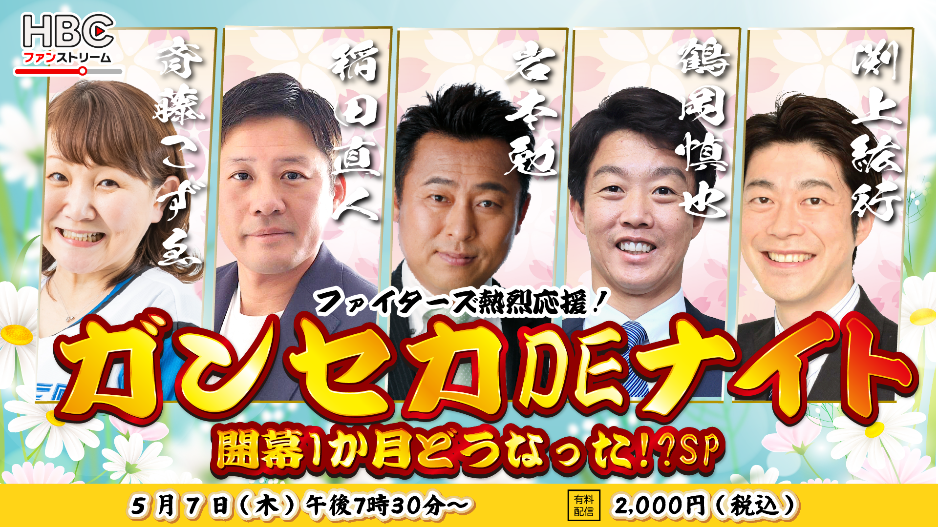 北海道放送株式会社(HBC)は、2026年5月7日(木)19:30より、『ファイターズ熱烈応援!「ガンセカDEナイト」開幕1か月どうなった!?SP』をHBCファンストリームにて配信いたします。