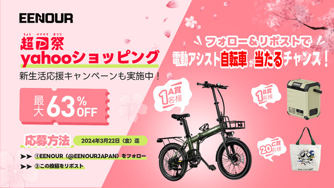 ヤフーショッピングで、EENOUR(イーノウ)の期間限定セールが実施中。または2024年3月22日(金)まで、EENOUR(イーノウ)公式SNSでは、新生活を応援する特別な抽選キャンペーンも開催しています。新生活に必要なアイテムをお得に手に入れる絶好のチャンスです。