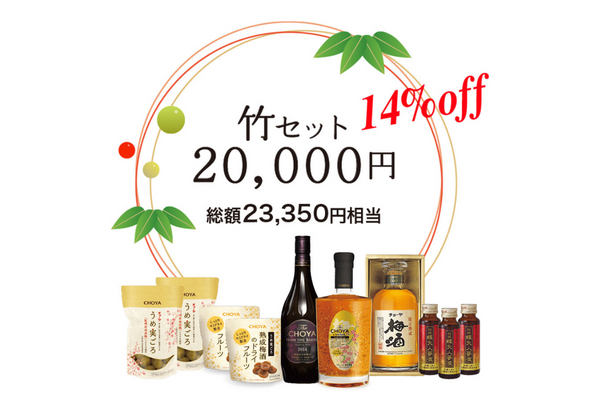 今年は全てのセットに限定品「The CHOYAフロム・ザ・バレル」が同梱される、まさにプレミアムな福袋です。他にもロングセラーの定番梅酒から話題の新商品、年末年始にぴったりの金箔入り梅酒など梅のちからをたっぷり詰め込みました。