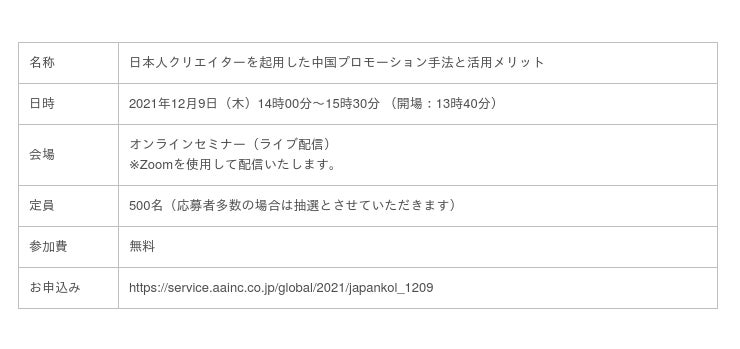 中国展開をご検討・実施中の日本企業様向けに、日本人クリエイターを起用した中国進出の基本や企業事例を解説するセミナーを開催いたします。