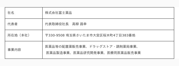 富士薬品は、1930年富山県富山市における配置薬販売業の創業からスタートし、現在では配置薬販売事業に加えて、ドラッグストア・調剤薬局事業、医薬品製造事業、医薬品研究開発事業、医療用医薬品販売事業を展開する複合型医薬品企業です。スローガン「とどけ、元気。つづけ、元気。」のもと、富士薬品グループ全体で日本全国に1,365店(2023年3月末時点)を展開する「セイムス」ブランドを中心としたドラッグストアと、全国に広がるラストワンマイルを埋める配置薬販売ネットワーク、そして医療用医薬品の研究開発力を生かし、誰もが豊かな人生を送れる社会の実現に向けて、人々の暮らしのあらゆる場面で寄り添い、元気な生活を支え続けてまいります。