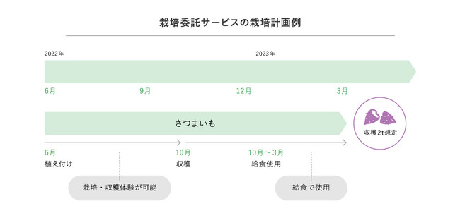 また、従来のレンタル畑では作物の栽培は契約者の責任であり、確実に作物を育てるには週1回ほど畑に行く必要がありましたが、『栽培委託サービス』では農家の農地の一部を借り、日々の栽培は農家に委託するため、保育園は無理なく作物を育てることが可能です。