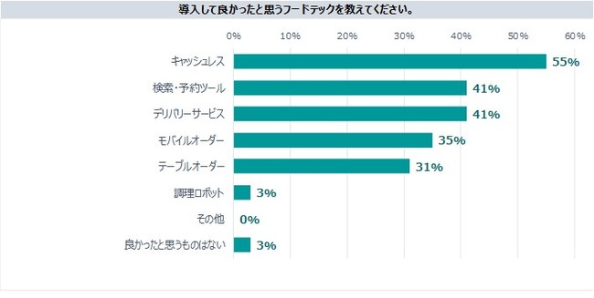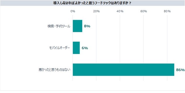 一方、導入しなければよかったと思うフードテックはほぼありませんでしたが、「検索・予約ツール」「モバイルオーダー」はあまり使いこなせていないという回答がありました。