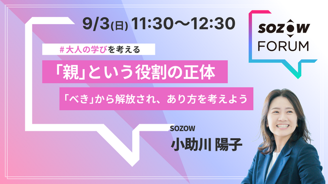 子育てにも、多様な選択肢を。 大人の学び合いセミナー「SOZOW FORUM」が今秋スタート 9月2日(土)・3日(日)初回開催