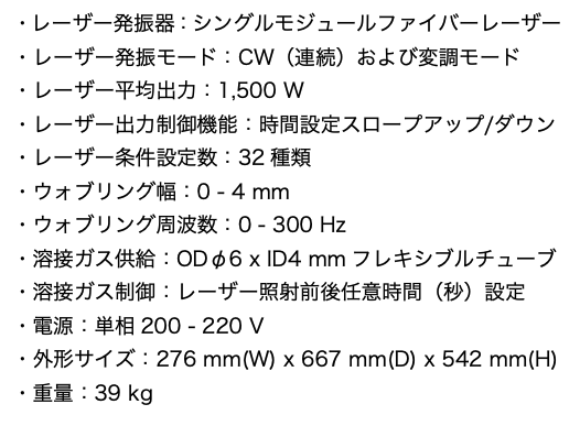 (*)当社製品を含めたネット検索が可能なレーザー溶接機製品を以下条件で比較した結果に基づき、業界最軽量という表記を使用(当社調べ、2022 年8月時点) 【比較条件】レーザー溶接機、空冷式、出力 1500 W