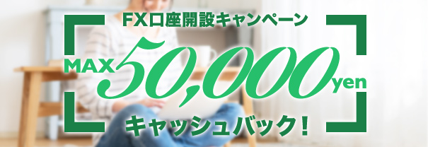 1月中に新規口座開設と対象期間中のお取引で条件を達成された方にもれなく最大50,000円をプレゼントするキャンペーンを実施しております。