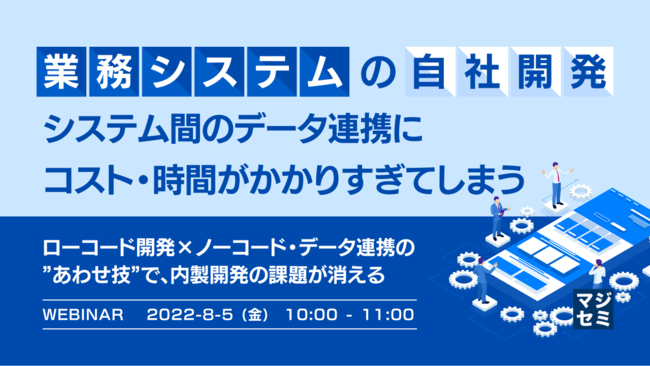 マジセミ株式会社は「ローコード+データ連携ツールで、内製化の課題を解決する」というテーマのウェビナーを開催します。