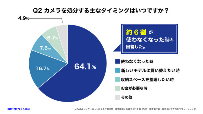 そこで、株式会社アクロスソリューションズと株式会社浜屋が共同運営している買取比較ちゃんねる(URL:https://www.hamaya-corp.co.jp/media )は、20歳〜60歳以上の男女2414人を対象に「カメラの買取に関する意識調査」を実施しました。