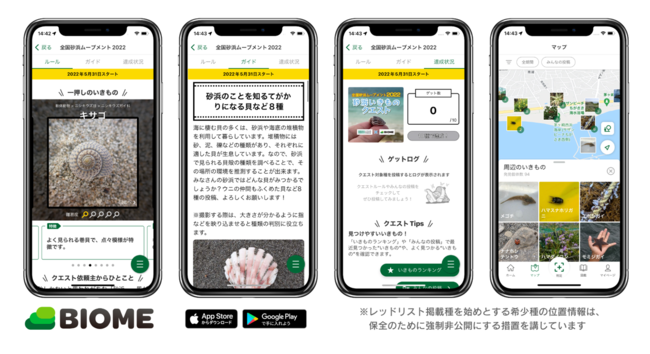 公益財団法人日本自然保護協会(東京都中央区、理事長:亀山 章 、以下NACS-J)と、いきものコレクションアプリ「Biome(バイオーム)」を運営する株式会社バイオーム(京都市下京区、代表取締役 藤木庄五郎)と、科学技術の力であらゆる環境問題を克服することを目指す株式会社ピリカ(東京都渋谷区、代表取締役:小嶌不二夫、以下ピリカ)は、3社連携で、アプリを使って誰でも簡単に楽しみながら本格的な生きもの調査やごみ拾いに参加できる「全国砂浜ムーブメント2022」を 5月30日(ごみゼロの日)から12月31日まで開催します。