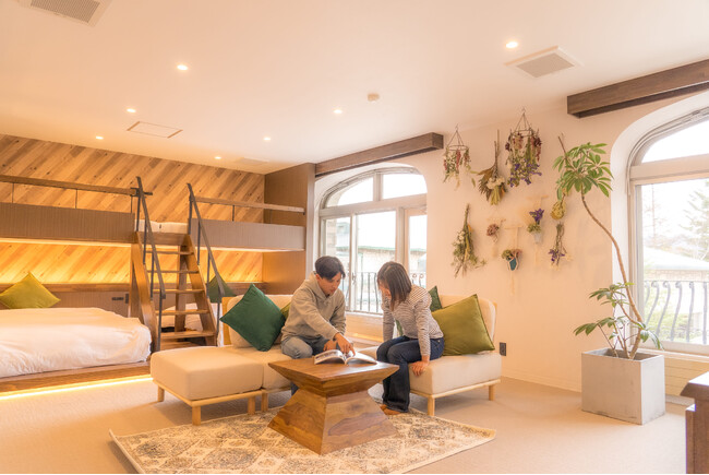 BUB RESORT Yatsugatakeの客室は、春夏秋冬を五感で感じながら楽しめる八ヶ岳施設で、アクティビティを体験した後にゆっくりとお過ごしいただける、より快適なご滞在を支えるお部屋二つのタイプがございます。バケーションステイタイプの客室は、ゆっくりとお過ごしいただける館内洋室となります。その中のノーススイートルームは、来場前からサプライズや特別な体験のご相談できる「ドリームプランナー」が専属となる、ベッドやテラスで「体験」を堪能できるアイテムスペースなど、仕掛けが詰まった特別なお部屋です。