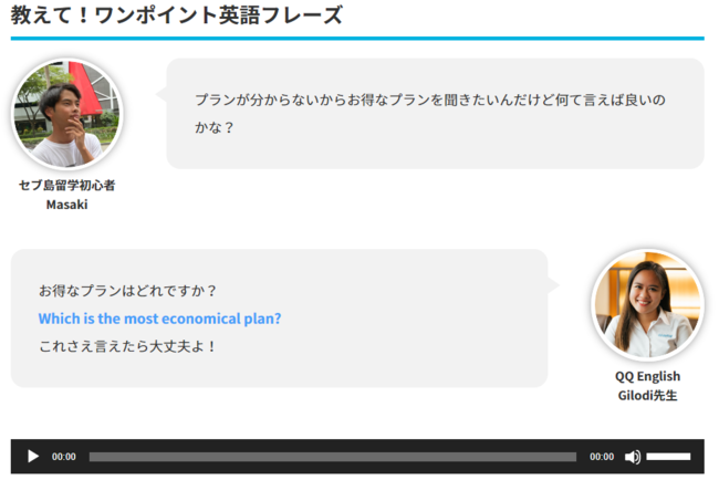 また、使えるワンポイント英語フレーズも音声付きでご紹介しています!