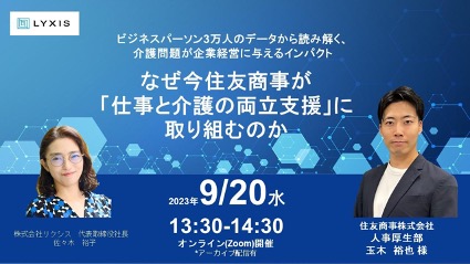 9月20日(水) 住友商事株式会社 人事厚生部様 登壇「なぜ今、住友商事が『仕事と介護の両立支援』に取り組むのか 」オンラインセミナーのご案内