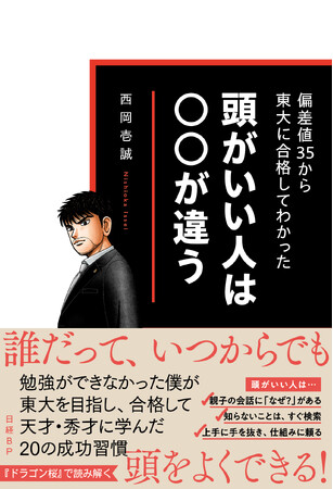 2023年6月1日(木)に、西岡壱誠さんの最新刊『偏差値35から東大に合格してわかった 頭がいい人は○○が違う』(日経BP)が刊行されます。偏差値35から東大に合格した経験を生かして、ドラマ日曜劇場「ドラゴン桜」の監修を担当、タレントの小倉優子さんの大学受験をサポートするなど、メディアでも活躍する西岡さんが「頭がいい人と、そうでない人の違い」について、あらためて考え抜いた1冊です。