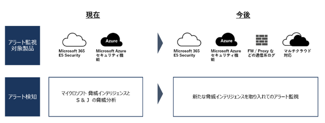 「JBS SOC」は今後、アラート監視対象をファイアウォールやプロキシなどの通信ログ、マルチクラウドまで広げることにより、「Microsoft 365」「Microsoft Azure」のセキュリティ統合監視から、お客さま環境全体のセキュリティ統合監視を目指していきます。
