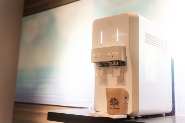 「ワンウェイプラスチック削減プロジェクト」は、当社の有機資源を用いたリユースカップ「森のタンブラー」や国産間伐材を活用したエコボトル「森のマイボトル」と、ウォータースタンド社が取り扱う水道直結型ウォーターサーバー「ウォータースタンド」を活用したプロジェクトで、本年9月に開始しました。「ウォータースタンド」は誰もがアクセスできる水道水を活用し、いつでもおいしい飲料水が使える利便性の高さと、ボトルの運搬や容器を必要としない環境に配慮したシステムが支持され、環境負荷低減に取り組みたい企業や学校、子育て世帯を中心とした個人のお客さまの自宅に導入されています。「森のタンブラー」・「森のマイボトル」と「ウォータースタンド」をセットで、ホテルなどの宿泊施設や学校、企業に提案し、ワンウェイプラスチック削減を推進します。