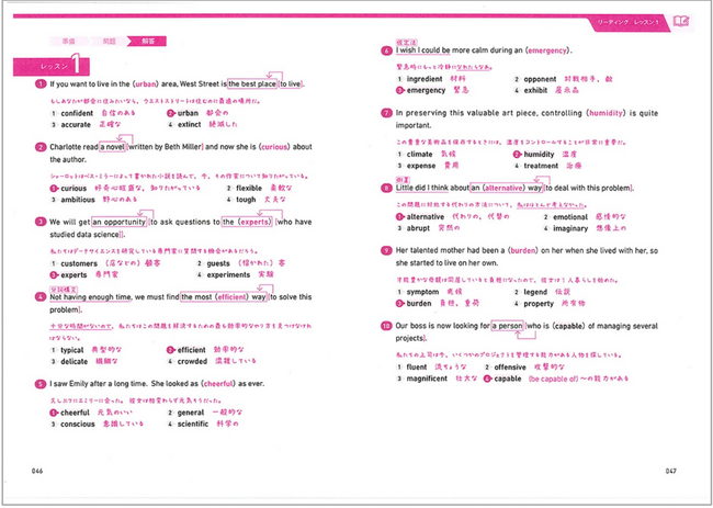 そこで本書は、部分訳やポイントと、問題文が一緒に見える「板書風書き込み式解説」を採用。解説文が短くなり、英文と訳の対応もつかみやすくなります。