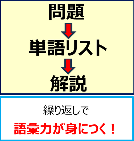 事前におさらいしてから問題に挑戦することで、予習の効果で問題が解きやすくなり、正解する喜びが学習意欲を高めます。復習もしやすく、語彙が定着します。