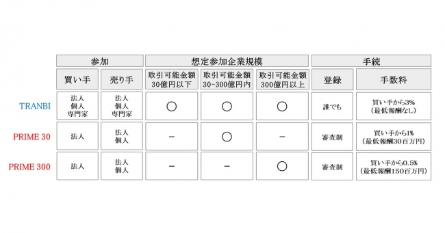 国内最大の事業承継・M&AプラットフォームTRANBI 『PRIME 300』(300億円以上専用)、『PRIME 30』(30億円以上300億円未満専用)サービス