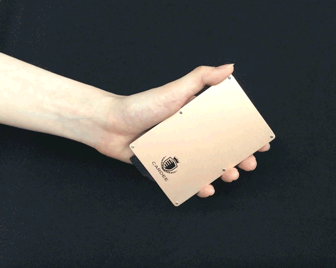このCARDEEは、よりスマートな会計を実現するために開発されたカードケースです。 瞬時に整列したカードが飛び出すことによって、もうカード選びに迷う事はありません。 表面加工はマット仕上げにより、より上品な品質に仕上がっています。 さらに、カード犯罪を防止するスキミングガード機能も備えております。