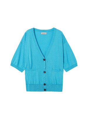 また、新しいコレクションの中心は、ウルトラファインカシミヤの4つボタンが着いた4ボタンのVネックのカーディガンです。ほんの少しドロップショルダーでルースフィットのシルエットが個性的なファルコネーリのデザインは、コンフィーシックでマストハブアイテムです。