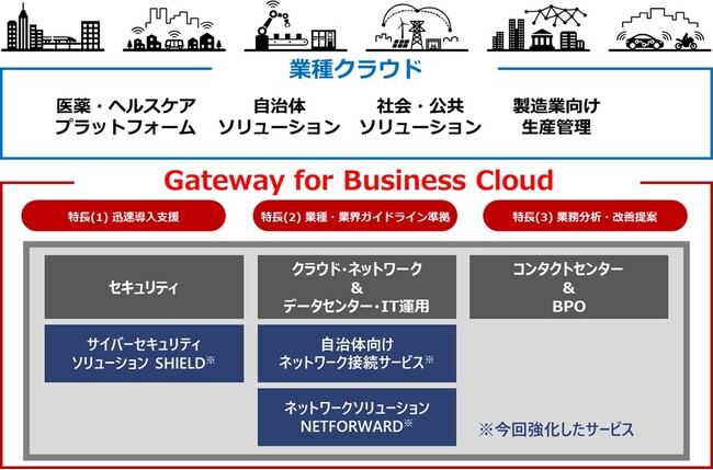 また、お客さまに対して、業種・業界の特長に合わせた付加価値の高いサービスを提供するため、クラウドベンダーや各種サービスベンダーとの連携も図りながら「Gateway for Business Cloud」の強化を継続的に行っています。