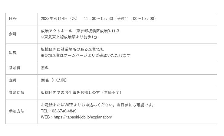 板橋区“いたばし就職サポート事業”を受託 9月14日 (水) 「合同企業説明会」開催!