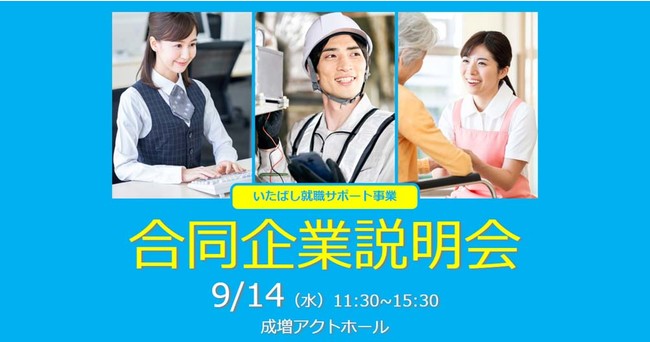 このたび本事業の一環として、板橋区内ではたらきたい求職者に向けて、9月14日(水)成増アクトホールで合同企業説明会を開催します。板橋区内に就業場所がある、採用意欲の高い15社が出展する説明会を行い、各企業担当者と個別ブースで業務内容や職場の雰囲気を直接聞くことができます。