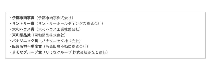 各企業賞:企業が最も優れていると判断した登壇起業家に授与