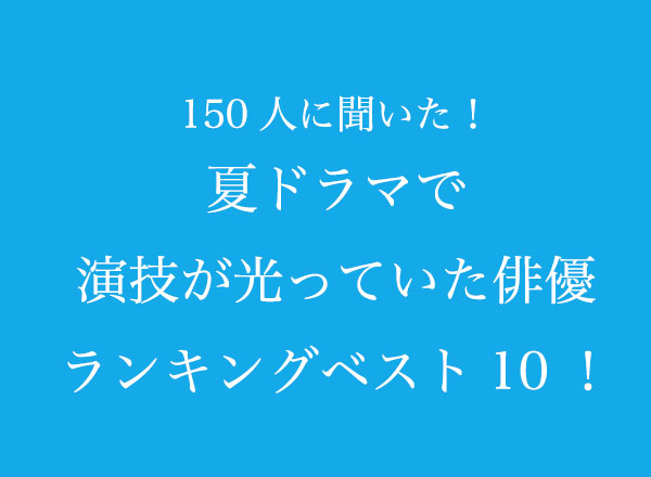 夏ドラマで演技が光っていた俳優ランキングベスト10!【150人へのアンケート調査】