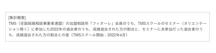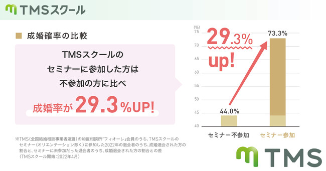 【成婚確率が29.3%UP】婚活セミナー「TMSスクール」利用者の成婚確率が非利用者に比べ29.3%改善