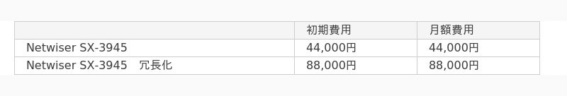 専用ロードバランサー「Netwiser」料金一覧 (税込価格)