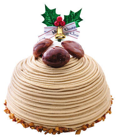 熊本県産球磨(くま)栗ダイスカットと球磨栗カスタードホイップをサンドし、濃厚な味わいの茨城県笠間市産和栗クリームで仕上げたプレミアムモンブランです。ひと口食べると、和栗の香りとおいしさが広がります。上面には熊本県産和栗と柊を飾りました。