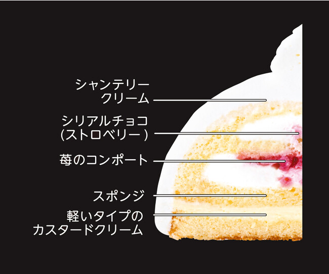 犬猫用ケーキ「いっしょに!Smile Switch!ドッグのブッシュ・ド・ノエル」と一緒に飼い主様も楽しめるケーキも登場。スポンジにバニラムース、苺ソース、苺クリームを重ね、シャンテリークリームで仕上げました。子どもから大人まで楽しめる、やさしい味わいのブッシュ・ド・ノエルです。