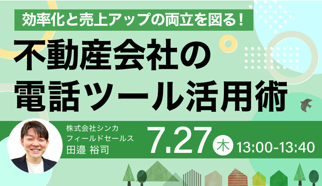 コミュニケーションプラットフォーム「カイクラ」の開発・販売を行う株式会社シンカ(本社:東京都千代田区、代表取締役社長 江尻高宏、以下、「シンカ」)は、無料オンラインセミナー「効率化と売上アップの両立を図る!不動産会社の電話ツール活用術」を2023年7月27日(木)に開催いたします。