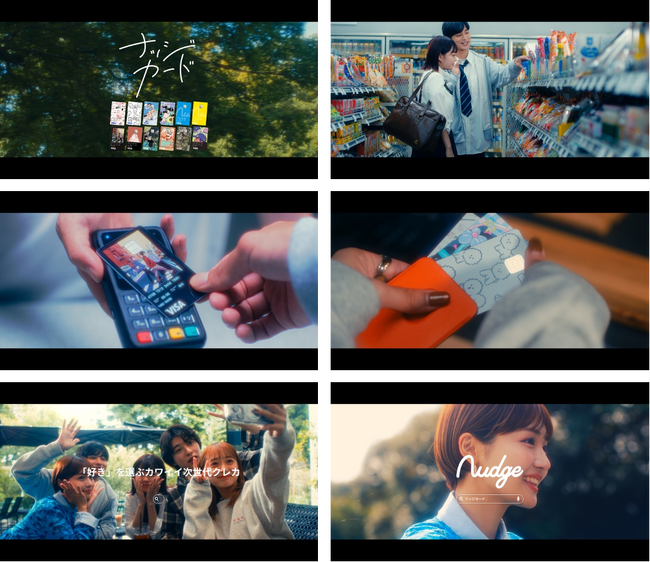 学生向けクレカ「学生部」の新デザインカードの発表に合わせ、この度『「好き」を選ぶ カワイイ次世代クレカNudge』をテーマとしたコンセプト動画を制作しました。服装などジャンルが異なる学生たちが自分の「好き」なカードを選択し、Nudgeのクレジットカードは学生の生活や気持ちに寄り添いながら側にいることを表現しています。
